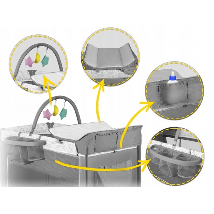 Un patut pliabil va fi util in timpul calatoriilor, precum si utilizarea de zi cu zi. Detaliile rafinate, fara margini ascutite, fac copilul sa se simta in siguranta.