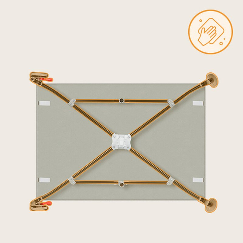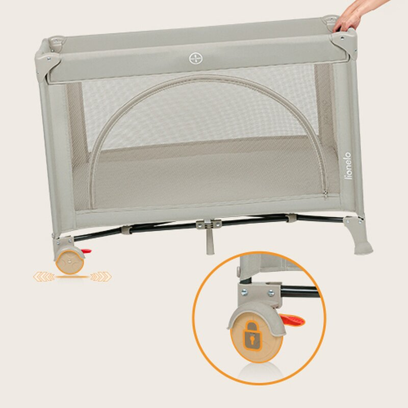 Cele 2 roti cu frane permit deplasarea usoara. Ridicati usor patul pe o parte pentru a-l muta. Datorita dimensiunilor sale compacte, trece usor prin usi sau holuri inguste.