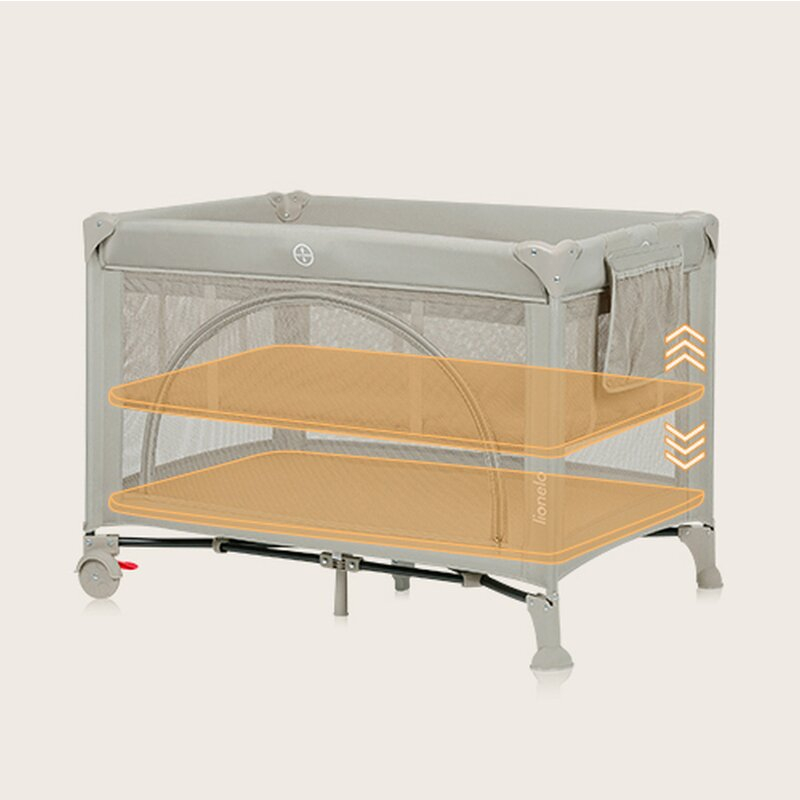 Nivelul superior este ideal pentru nou-nascuti, oferind parintilor acces usor si protejand spatele. Cand copilul poate sta singur in fund, salteaua se coboara. Salteaua din spuma T25 are o duritate potrivita si sustine corect coloana vertebrala.