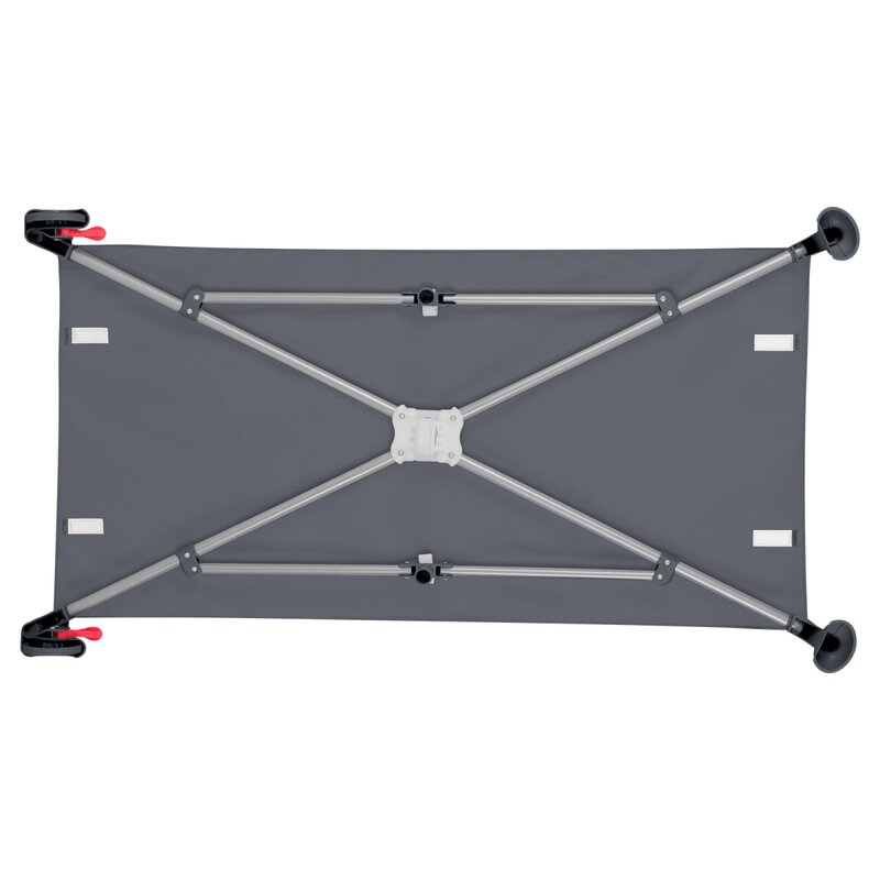 Mecanismul special permite plierea rapida a patutului: scoate salteaua si trage de manerul rosu. Structura se pliaza singura, fara efort si fara unelte. Pentru asamblare, intinde partile opuse si apasa manerul rosu spre interior. Cateva miscari si gata!