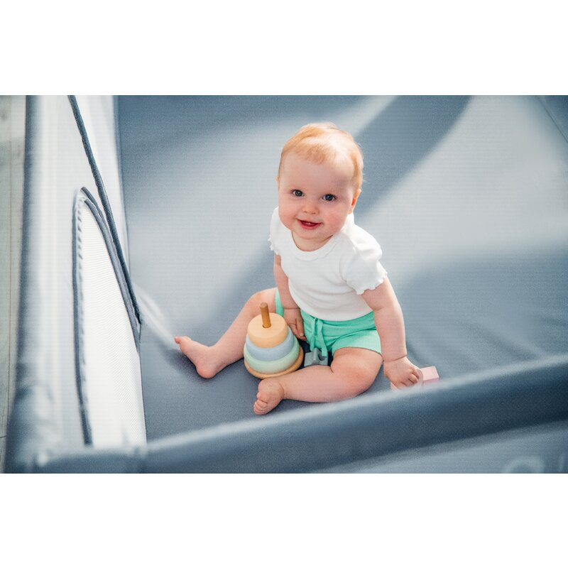 Tarcul de joaca Willow XL ofera spatiu pentru copilul dumneavoastra sa se joace in siguranta si liber. Dimensiunea tarcului de joaca permite bebelusului sa se miste liber, exersand rostogolirea, tararea si primii pasi, dar fara riscul de a iesi din spatiul desemnat. Tesatura din partea inferioara a tarcului de joaca ofera un spatiu curat pentru joaca zilnica.