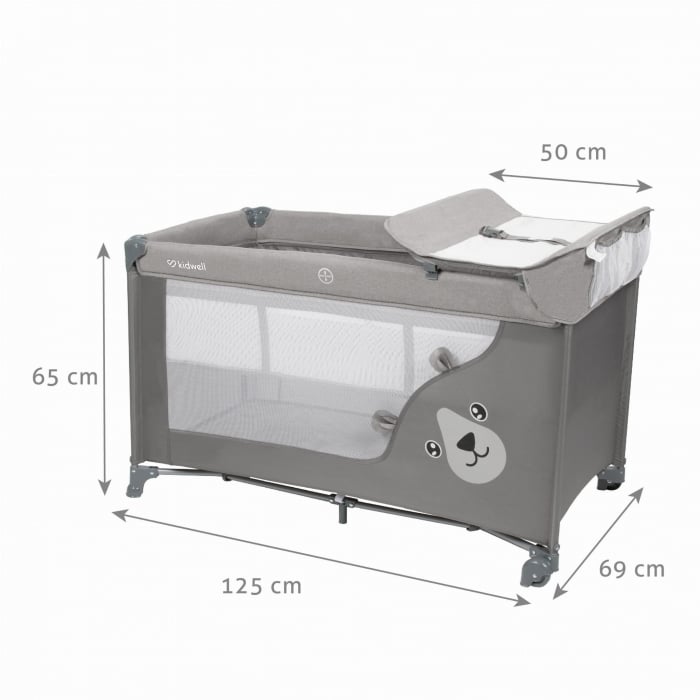 - Un spatiu de odihna si somn confortabil pentru copilul tau, pe care il puteti ajusta in functie de varsta datorita celor doua inaltimi ale saltelutei. Nivelul superior este destinat bebelusilor pana la aprox. 6 luni (max. 9 kg), nivelul inferior pentru copii pana la 3 ani (max. 15 kg).
