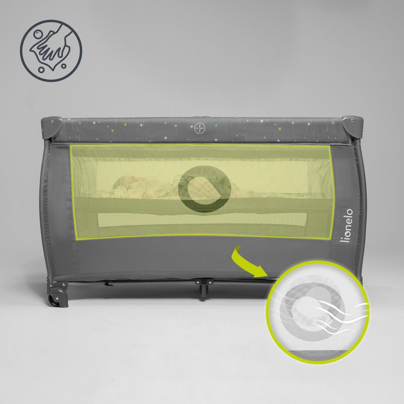 In patutul de calatorie Lionelo Stefi Plus , copilul va gasi spatiu pentru a se odihni si a se juca fara grija. Cadrul patutului a fost construit in asa fel incat copilul sa fie in siguranta chiar si atunci cand invata sa se ridice. Tuburile sunt pe exterior si capacul pe interior. Chiar si atunci cand un copil cade peste cap, acesta nu este expus elementelor dure. De aceea, nu va mai fi nevoie de protectii suplimentare.