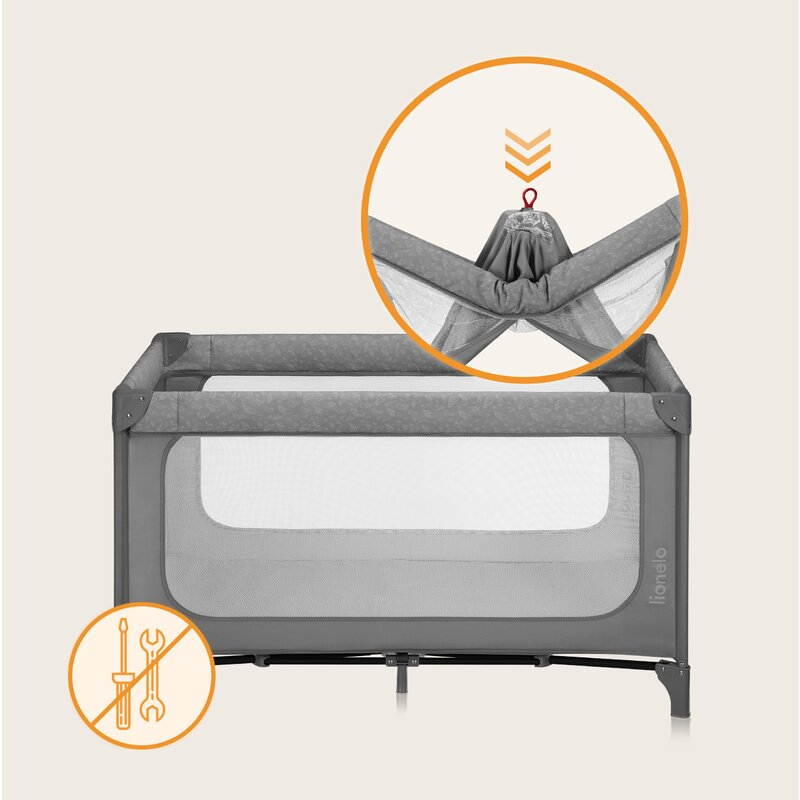 Lionelo Jasmin Easy Fold este un patut de calatorie modern, dotat cu un sistem inovator de pliere rapida. Produsul este gata de utilizare sau transport in doar cateva secunde.