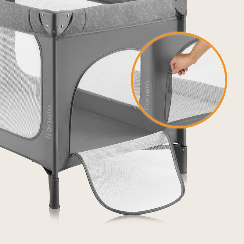 Panoul lateral cu fermoar permite copiilor mai mari sa intre singuri in patut. Buzunarul practic ofera spatiu pentru depozitarea scutecelor, jucariilor sau servetelelor. Geanta de transport inclusa adauga un plus de comoditate pentru calatorii. Fabricat din material dens tesut, pentru durabilitate maxima.