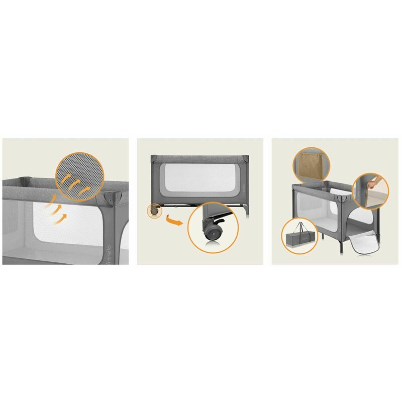 Lionelo Jasmin Easy Fold este un patut de calatorie modern, dotat cu un sistem inovator de pliere rapida. Produsul este gata de utilizare sau transport in doar cateva secunde. Designul sau permite parintilor sa-l manevreze cu cateva miscari simple, fara a avea nevoie de ajutor suplimentar. Geanta inclusa faciliteaza transportul, iar patutul incape cu usurinta in portbagajul unei masini compacte. Salteaua usoara si ergonomica ofera un sprijin excelent pentru coloana vertebrala si poate fi pozitionata pe doua niveluri, fiind potrivita atat pentru nou-nascuti, cat si pentru copiii mai mari. Laturile din plasa asigura o circulatie optima a aerului si permit parintilor si copilului sa mentina contactul vizual.