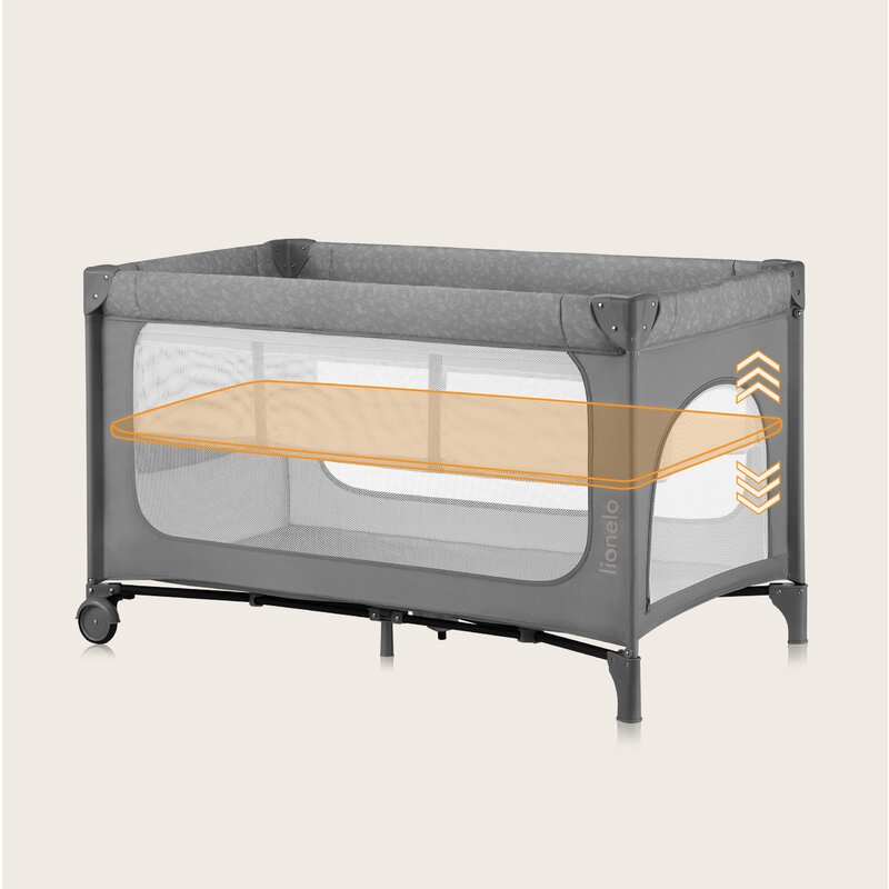 Cu doua niveluri de suspensie, salteaua poate fi ajustata in functie de varsta si nevoile copilului. Nivelul superior este destinat celor mai mici copii (pana la 9 kg) sau pana cand acestia incep sa stea in sezut, reducand astfel efortul parintilor de a se apleca.