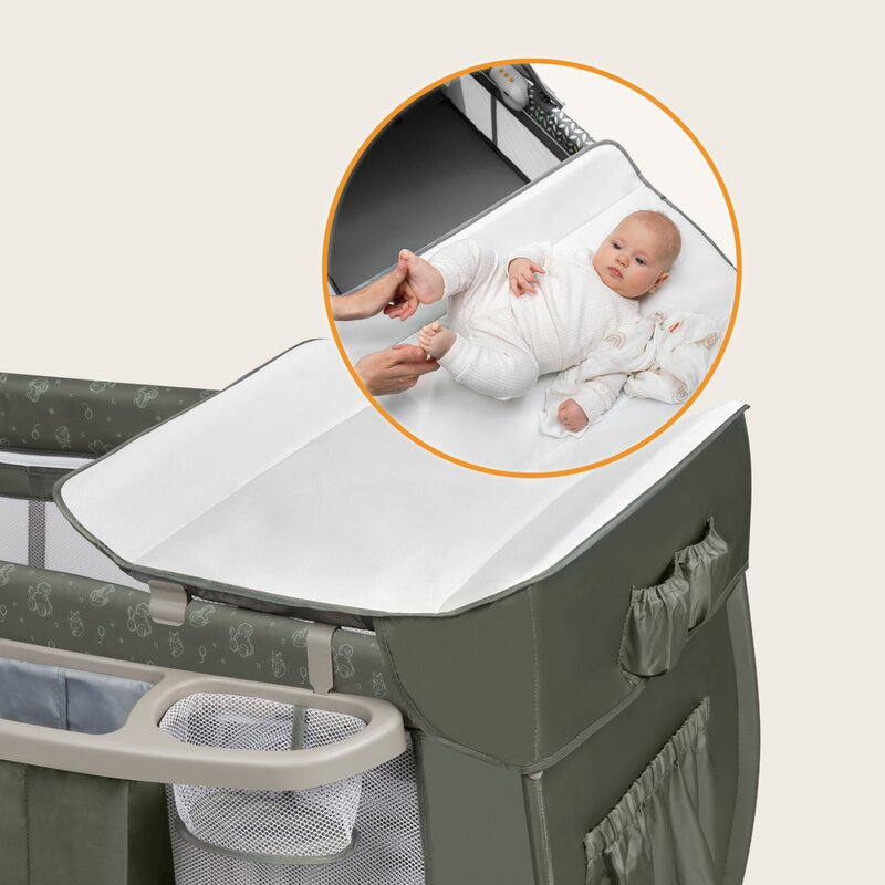 Masa de infasat confortabila este... si mai confortabila. Dupa utilizare, nu este nevoie sa-l puneti deoparte nicaieri - este atasata de lateralul patului. O singura miscare a mainii si masa de infasat este ascunsa sau gata de utilizare .