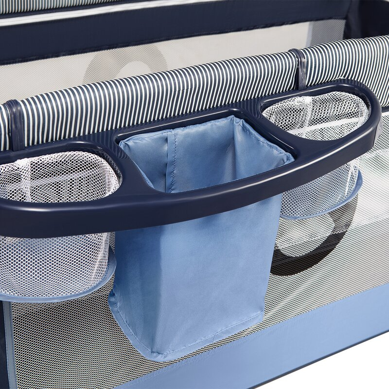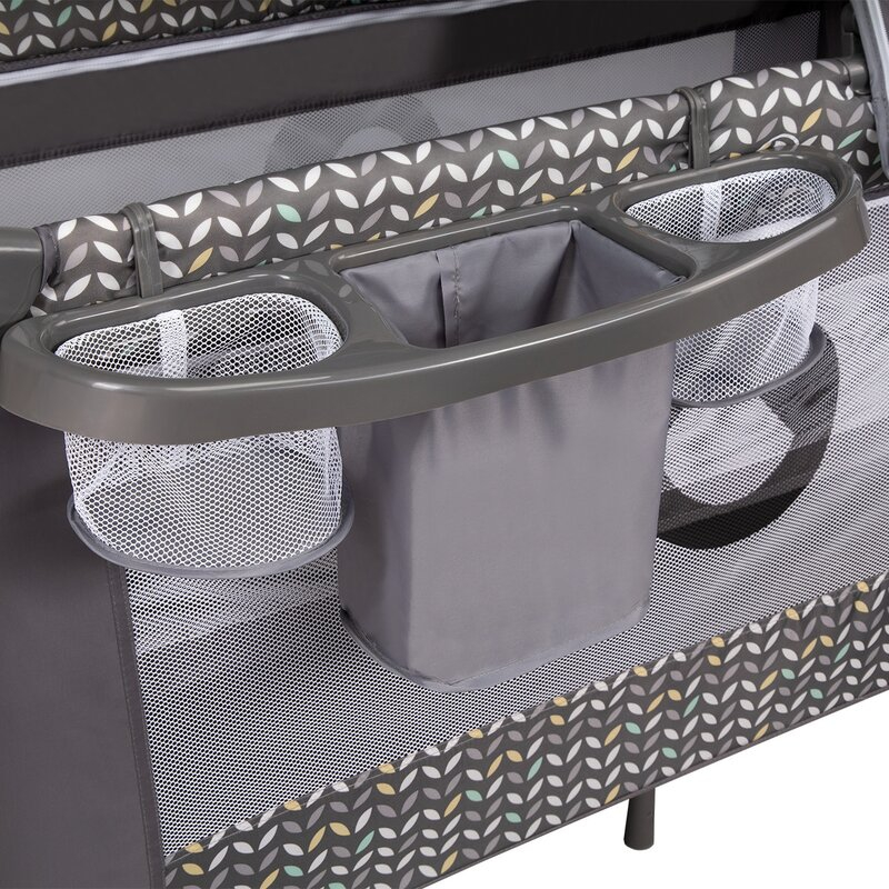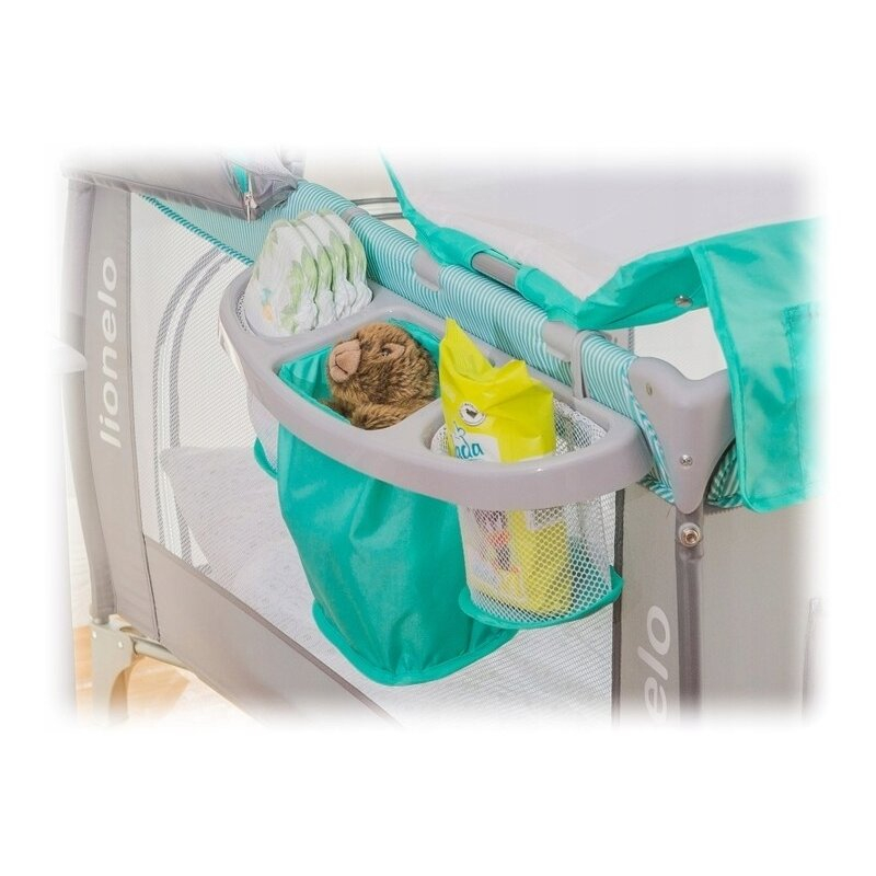 Un organizator stabil, cu trei compartimente, agatat pe partea laterala a patului, ajuta la pastrarea lucrurilor ordonate si la indemana intotdeauna cele mai necesare accesorii pentru bebelus. Patul are si buzunare suplimentare utile, de ex. pentru jucarii.