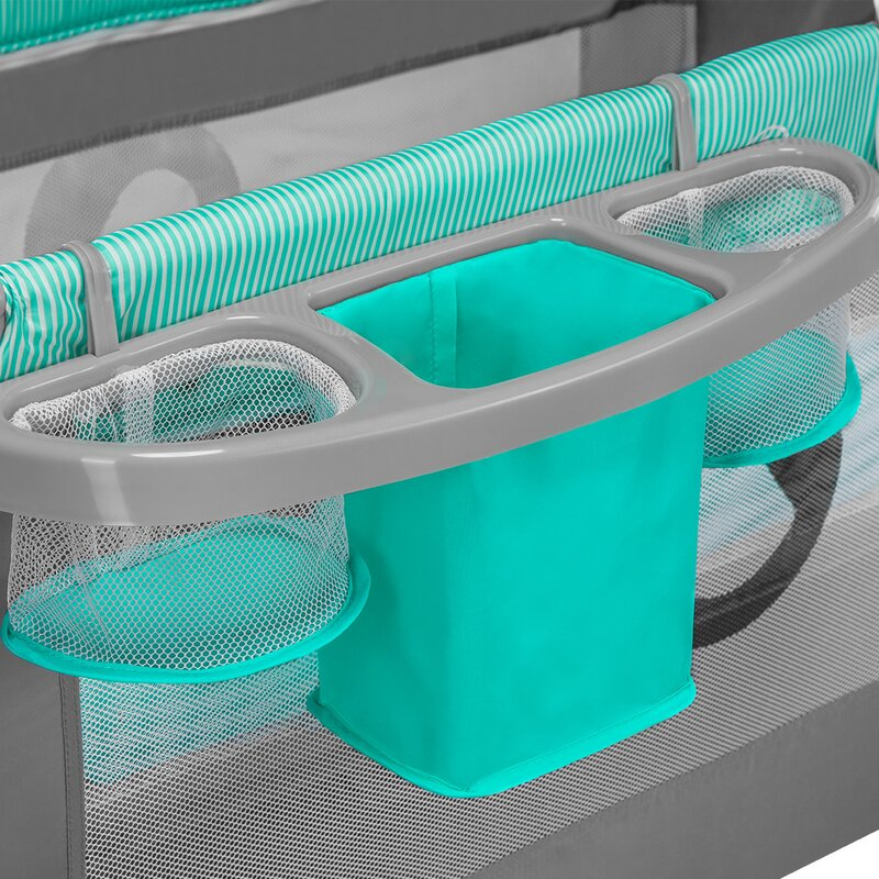 Un organizator stabil, cu trei compartimente, agatat pe partea laterala a patului, ajuta la pastrarea lucrurilor ordonate si la indemana intotdeauna cele mai necesare accesorii pentru bebelus. Patul are si buzunare suplimentare utile, de ex. pentru jucarii.