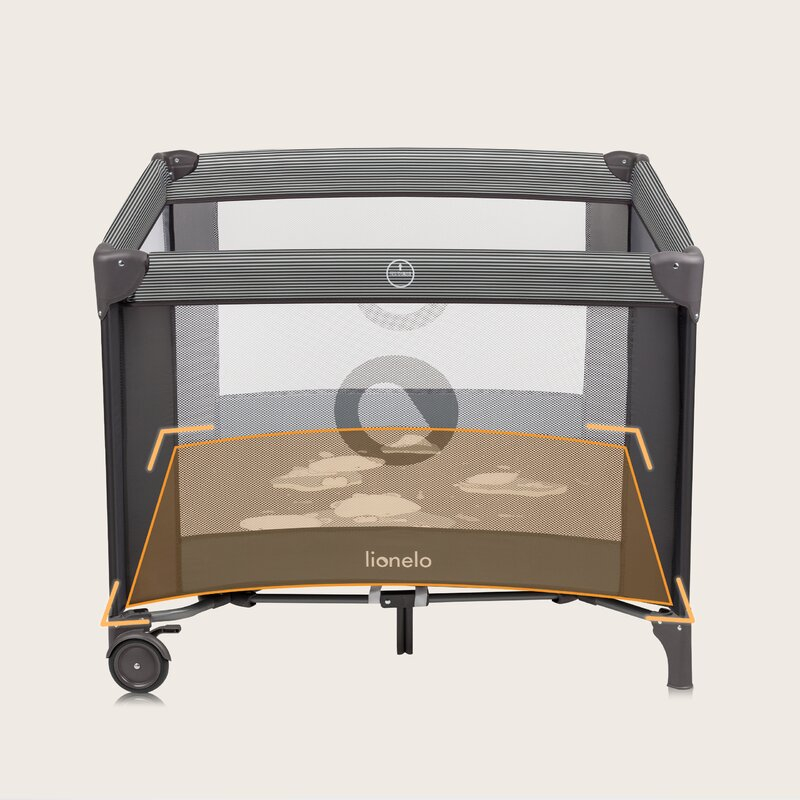 Lionelo Bonnie este un tarc de joaca functional pentru bebelusi, care le permite parintilor sa delimiteze o zona sigura pentru joaca si odihna pentru micutul lor. Dimensiunea mare asigura libertatea de miscare a copilului, in timp ce una dintre intrarile laterale, cu fermoar, permite copiilor mai mari sa intre si sa iasa din tarc singuri. Acest lucru nu doar ca ofera copilului un grad mare de independenta, dar si usureaza sarcina parintelui, care nu trebuie sa ridice si sa aseze copilul de fiecare data. Cu toate acestea, inchiderea este plasata pe exterior, astfel incat tarcul sa ramana sub controlul total al parintelui. Peretii laterali sunt confectionati dintr-o plasa speciala care garanteaza respirabilitatea si permite pastrarea contactului vizual intre copil si parinte. De asemenea, tarcul are o saltea speciala cu densitate T25, adaptata nevoilor copilului. 2 roti cu frane permit mutarea libera a tarcului conform nevoilor curente.
