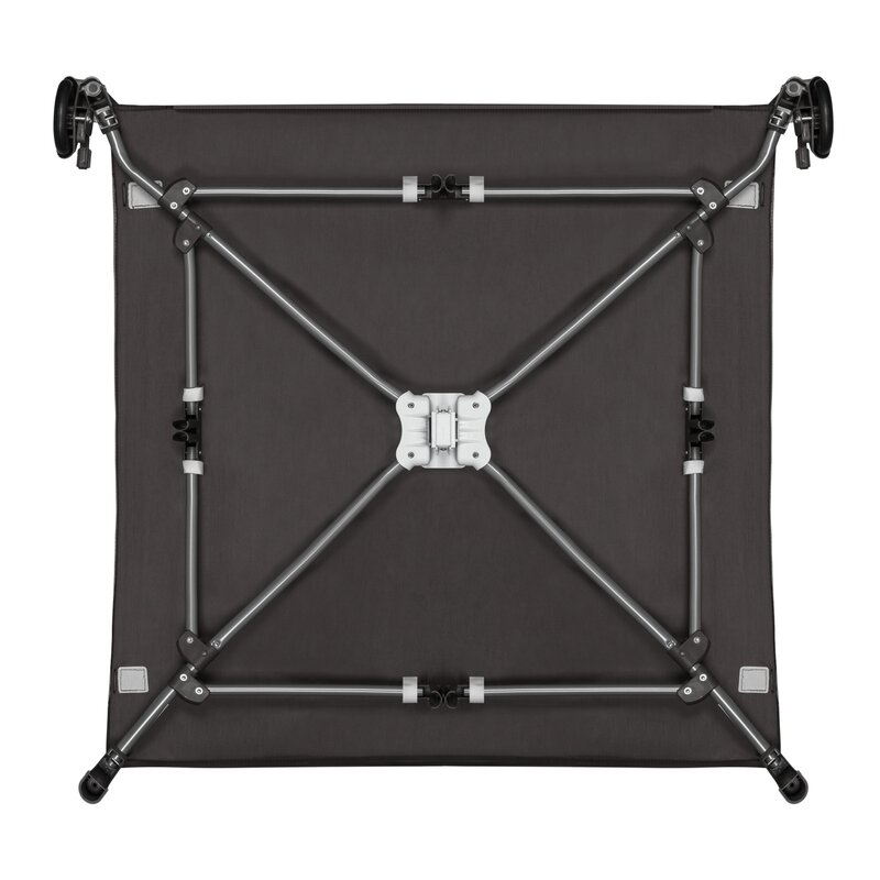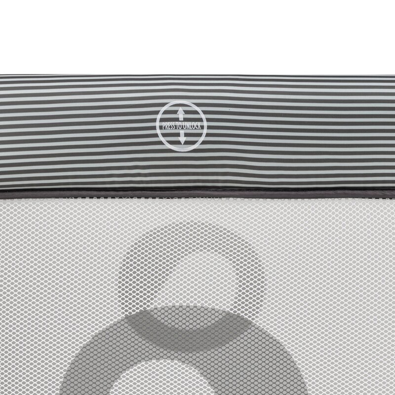 Peretii laterali sunt confectionati din plasa aerisita pentru a garanta circulatia constanta a aerului. In plus, aceasta permite mentinerea contactului vizual intre copil si parinti.