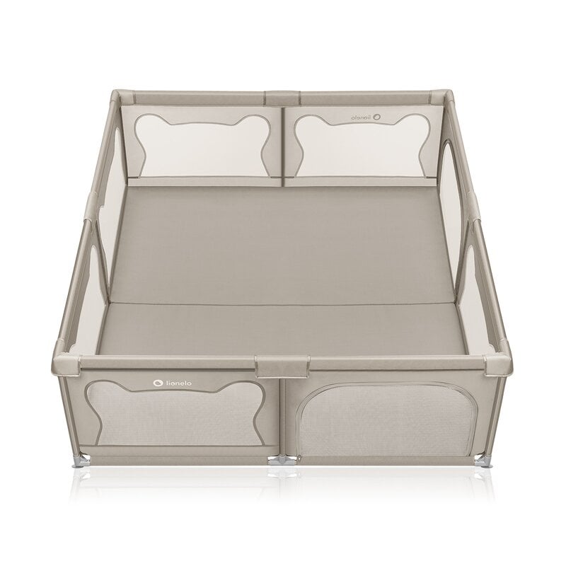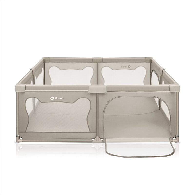 Laturile inalte ale tarcului de joaca sunt realizate din plasa, care nu numai ca asigura circulatia aerului, dar garanteaza si o buna vizibilitate, astfel incat parintele sa poata controla ce se intampla cu cel mic. Partile moi minimizeaza riscul unui posibil impact, iar designul asemanator urechilor de urs incurajeaza copiii sa se joace singuri in interiorul tarcului.