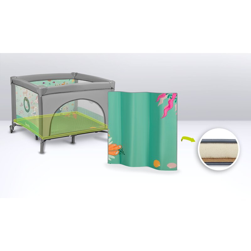 Ne dam seama ca fiecare parinte are nevoie de un moment fara copilul sau - de aceea ne-am asigurat sa cream un spatiu pentru copilul mic, care nu numai ca il mentine in siguranta, ci si distrat. Covorasul educational incorporat si cele 4 jucarii Velcro incluse in set fac din tarcul de joaca un loc ideal pentru joaca independenta. Imaginile colorate care infatiseaza animale din intreaga lume dezvolta imaginatia si ii fac pe copii dornici sa petreaca timp in interiorul tarcului de joaca. In plus, salteaua este acoperita cu material 3D, care sustine dezvoltarea senzoriala a copilului. Un numar mare de culori influenteaza spatiul pentru a fi prietenos pentru cei mai tineri, astfel incat parintele sa poata participa calm la indatoririle lor sau sa se relaxeze.