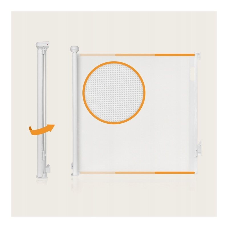 Bariera de siguranta Thea este potrivita pentru montarea pe diferite tipuri de pereti. Setul de produse include 3 seturi de elemente de fixare pentru instalare in diferite locuri. Functia Clip On / Off permite comutarea fara probleme a plasei dintre camere. Bariera se intinde pana la 140 de centimetri. Produsul este fabricat dintr-un material sintetic durabil, rezistent la razele UV si ploaie. Datorita acestui fapt, poarta poate fi utilizata nu numai in interior, ci si in exterior.