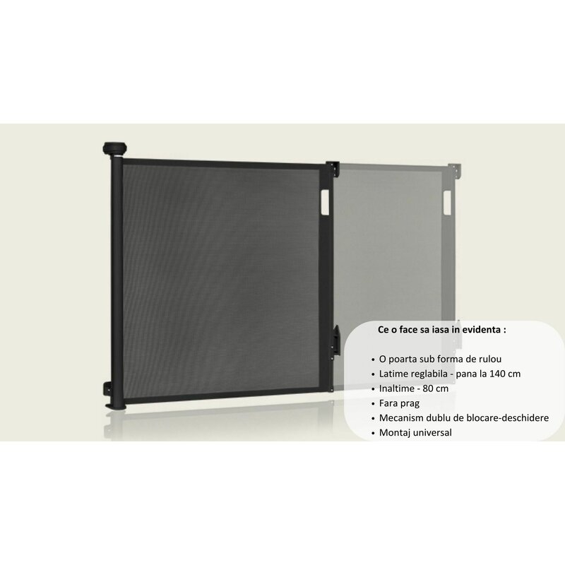 Bariera nu are prag, ceea ce inseamna ca nu exista riscul ca un copil sau un parinte sa se impiedice.