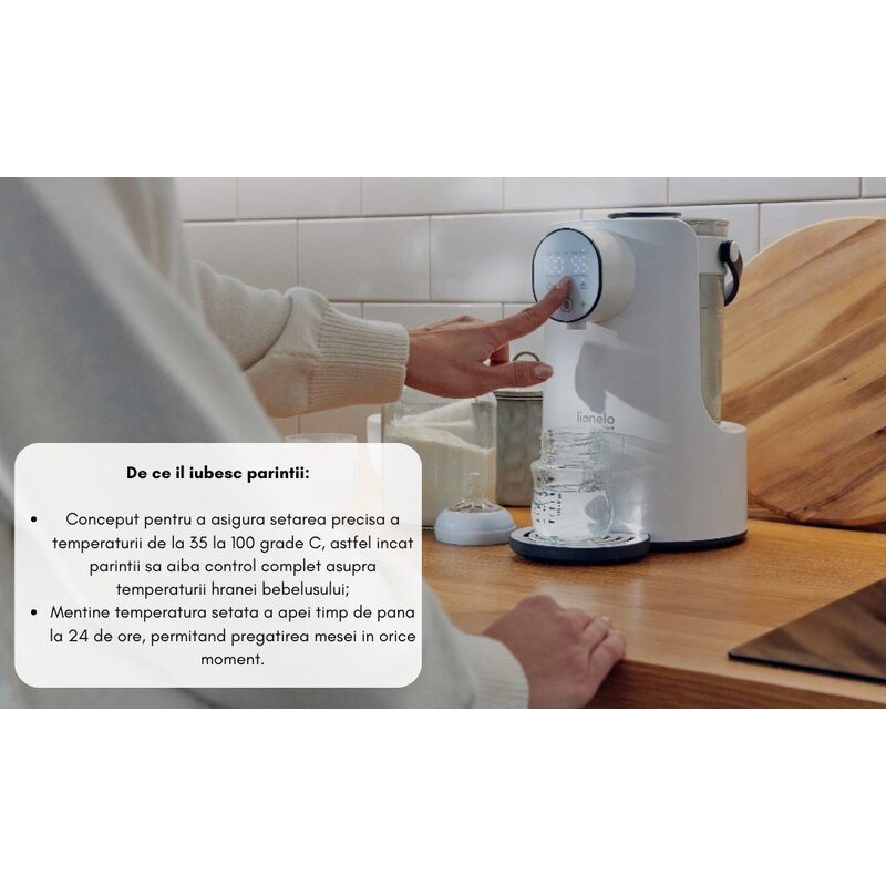 Temperatura poate fi setata de la 35 grade C la 100 grade C, si ajustata in trepte de 5 grade C, pentru a asigura ca este perfect adaptata nevoilor alimentare ale bebelusului.