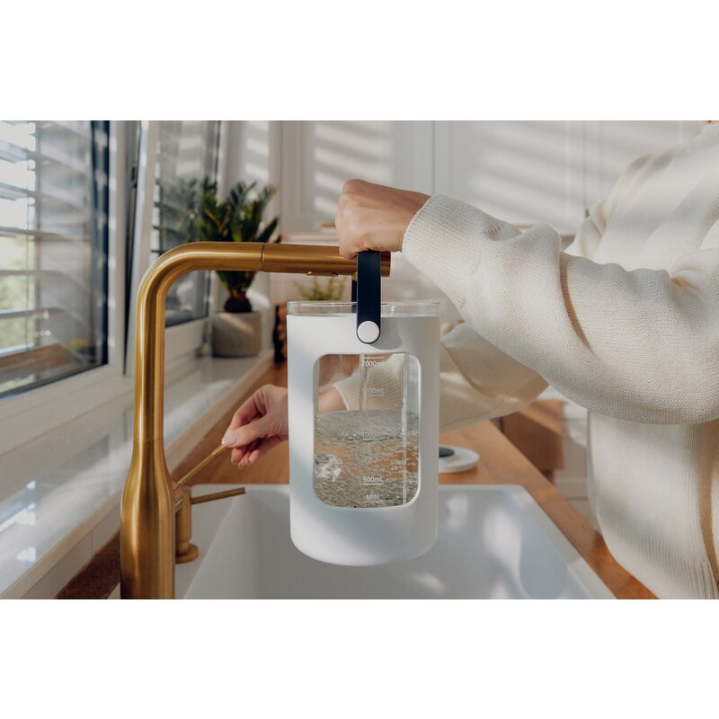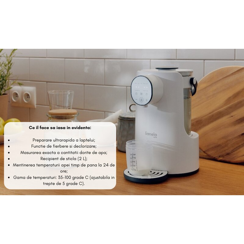 Recipientul de apa de 2 litri permite prepararea unei cantitati mari de apa calda odata, ceea ce este important pentru sincronizarea meselor pentru frati sau pentru pregatirea rapida a unei sticle suplimentare de hrana pentru o calatorie sau o noapte linistita.