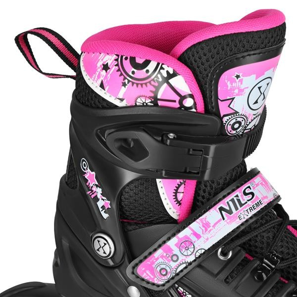 Modelul NH10905 Nils Extreme are, de asemenea, un sistem de ajustare a marimii in 4 pasi, ceea ce permite adaptarea ghetelor la nevoile utilizatorului. Astfel, economisesti timp si bani, prelungind durata de utilizare a patinelor si permitand utilizarea lor de catre mai multe persoane.