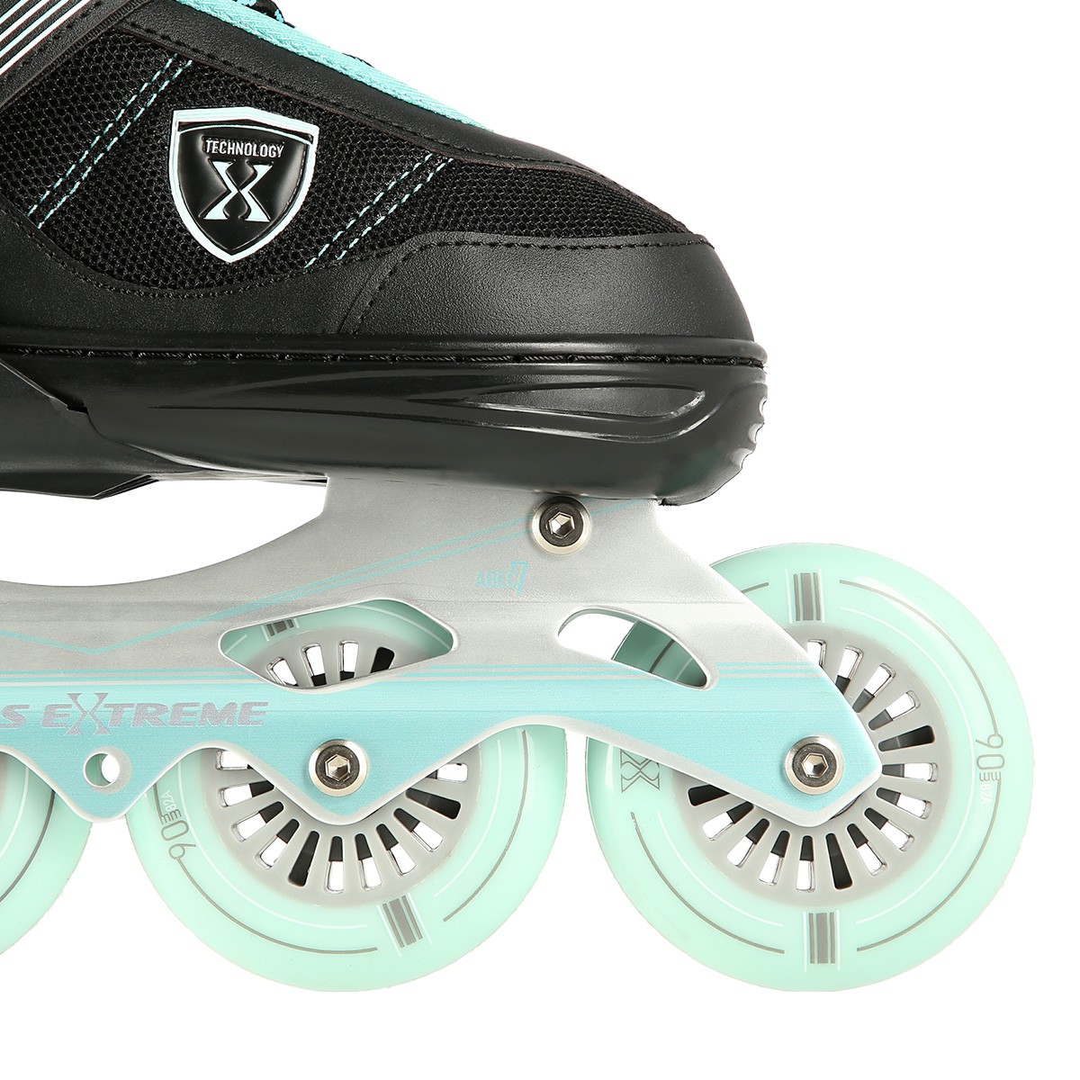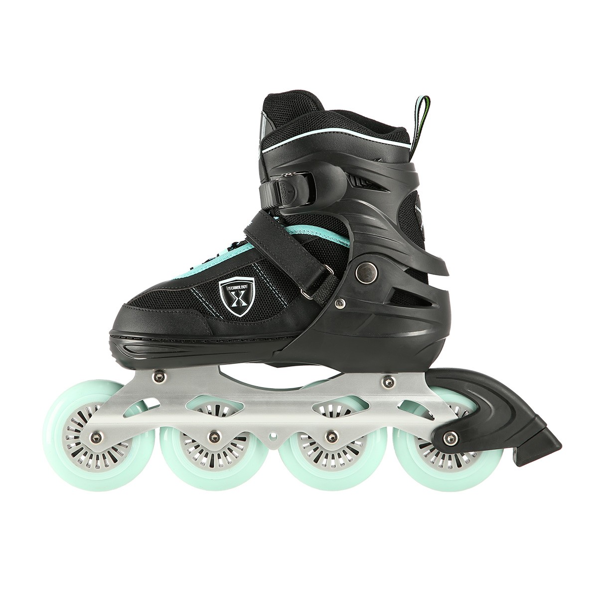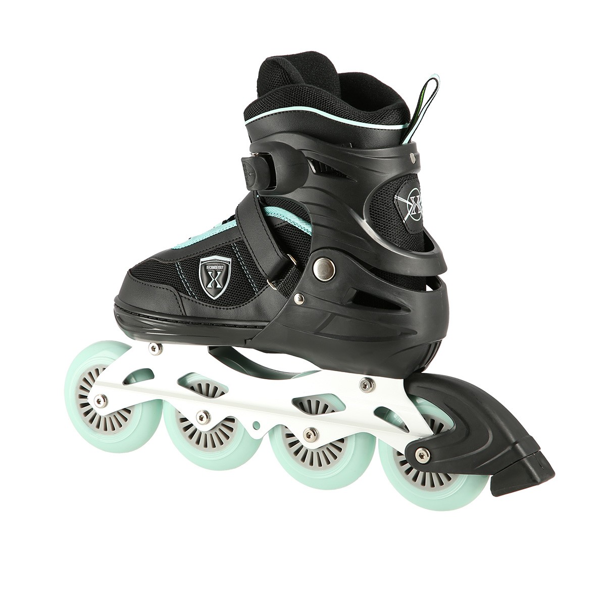 Rotile moi asigura o buna aderenta la sol si absorb bine toate vibratiile. Fixarea pantofului se face cu o catarama, curea cu velcro si sireturi asigura o siguranta maxima in timpul deplasari, in timp ce frana realizata din PP rezistent la impact de cea mai buna calitate va determina o oprire sigura, chiar si la viteze relativ mari.