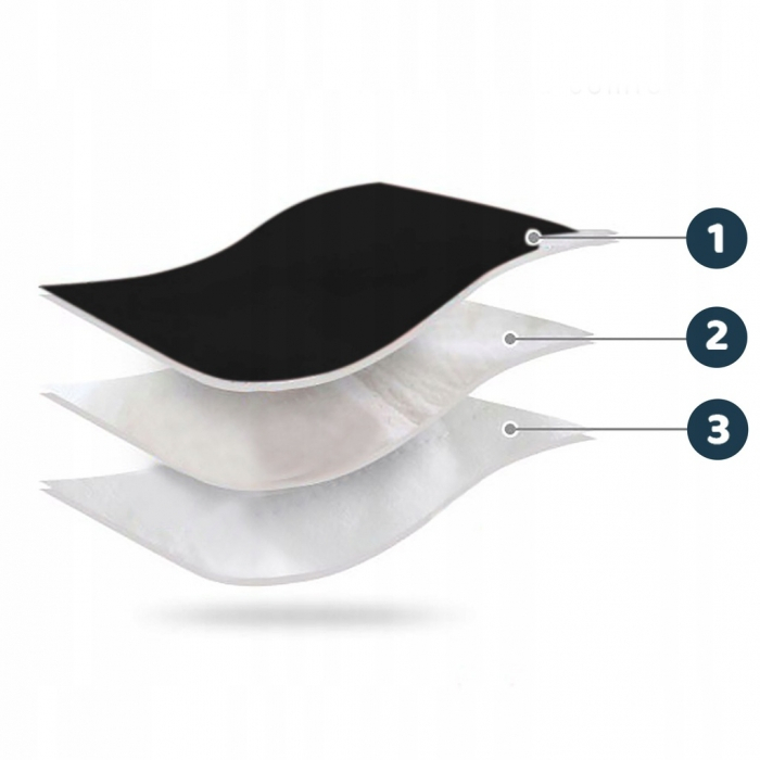 Saculet cu 3 straturi, de inalta calitate: un strat superior care garanteaza impermeabilitatea si rezistenta la vant, stratul mijlociu umplut cu material cald, puf, antialergic, iar stratul interior conceput pentru a asigura un drenaj adecvat al umiditatii si pentru a mentine temperatura corecta.