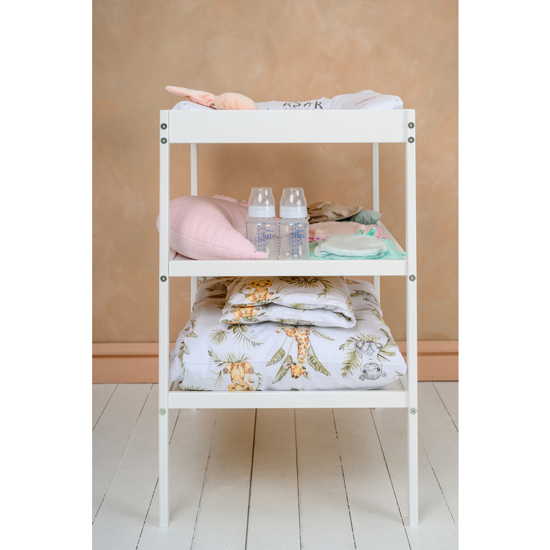 Lucrurile pot sa fie usor de pozitionat in orice spatiu, dimensiunile masutei de schimbat fiind reduse, iar spatiile libere dintre polite permit depozitarea lucrurilor fie in cutiute pentru a economisi spatiu sau direct pe acestea pentru acces facil si rapid.