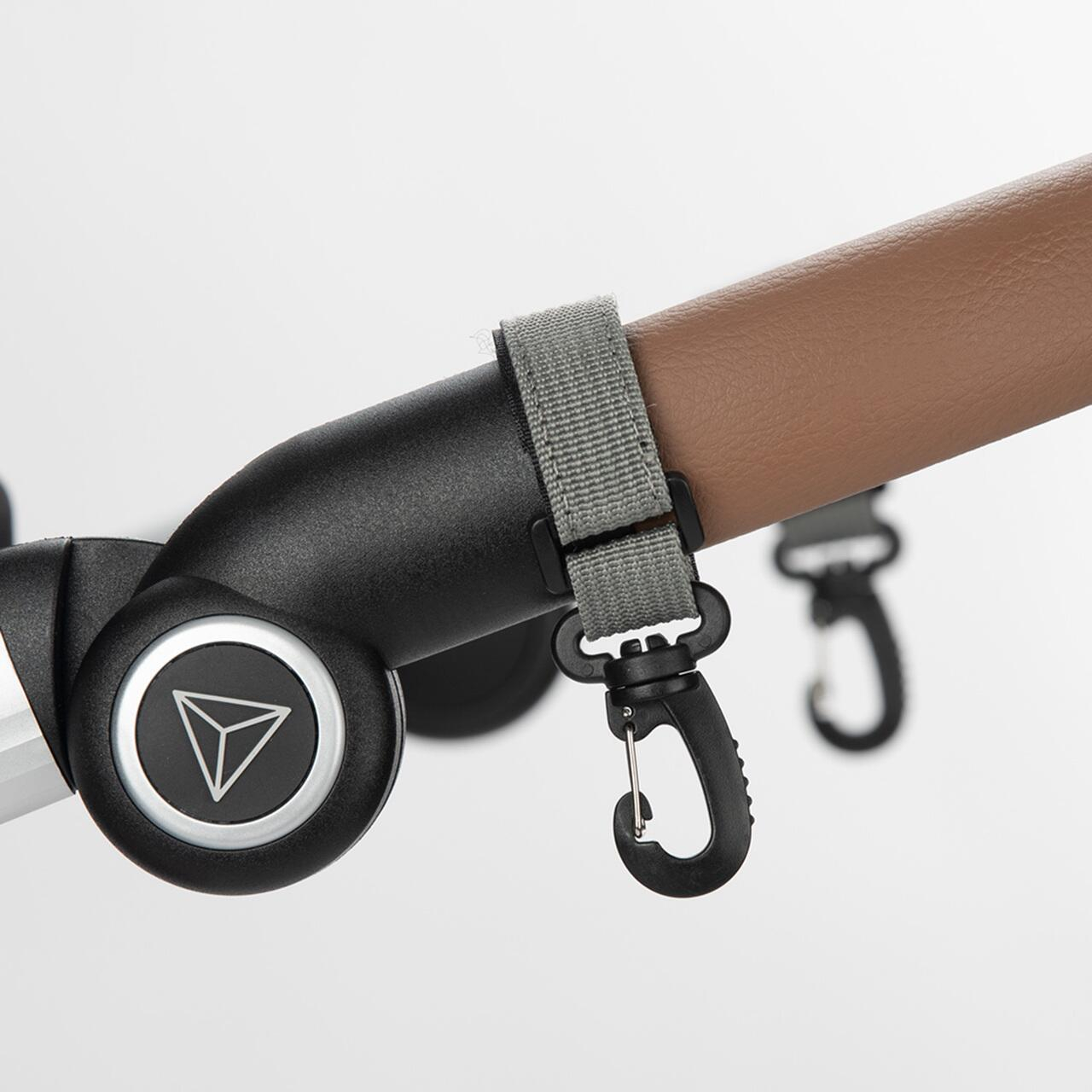 Deasemenea, inaltatorul poate fi atasat de carucior, astfel incat sa nu fie nevoie sa fie neaparat transportat pe umar. Atasarea flexibila de carucior se face simplu cu ajutorul celor doua carabine Clip&Go atasate.