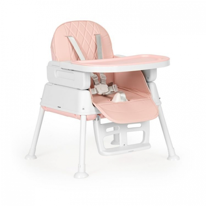 3 in 1: scaun de masa inalt, scund sau scaun atasat de alt scaun. Este cunoscut printr-o structura stabila, design modern si picioare metalice rezistente. Este echipat cu o tava detasabila, reglabila, cu 2 straturi, un blocaj de siguranta pentru copii si centuri de siguranta in 5 puncte.