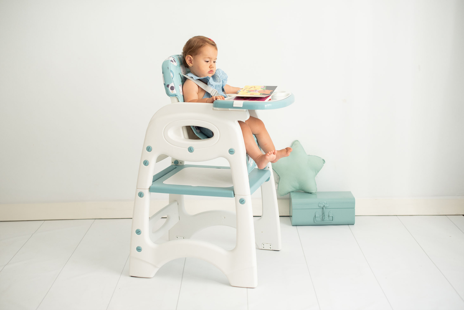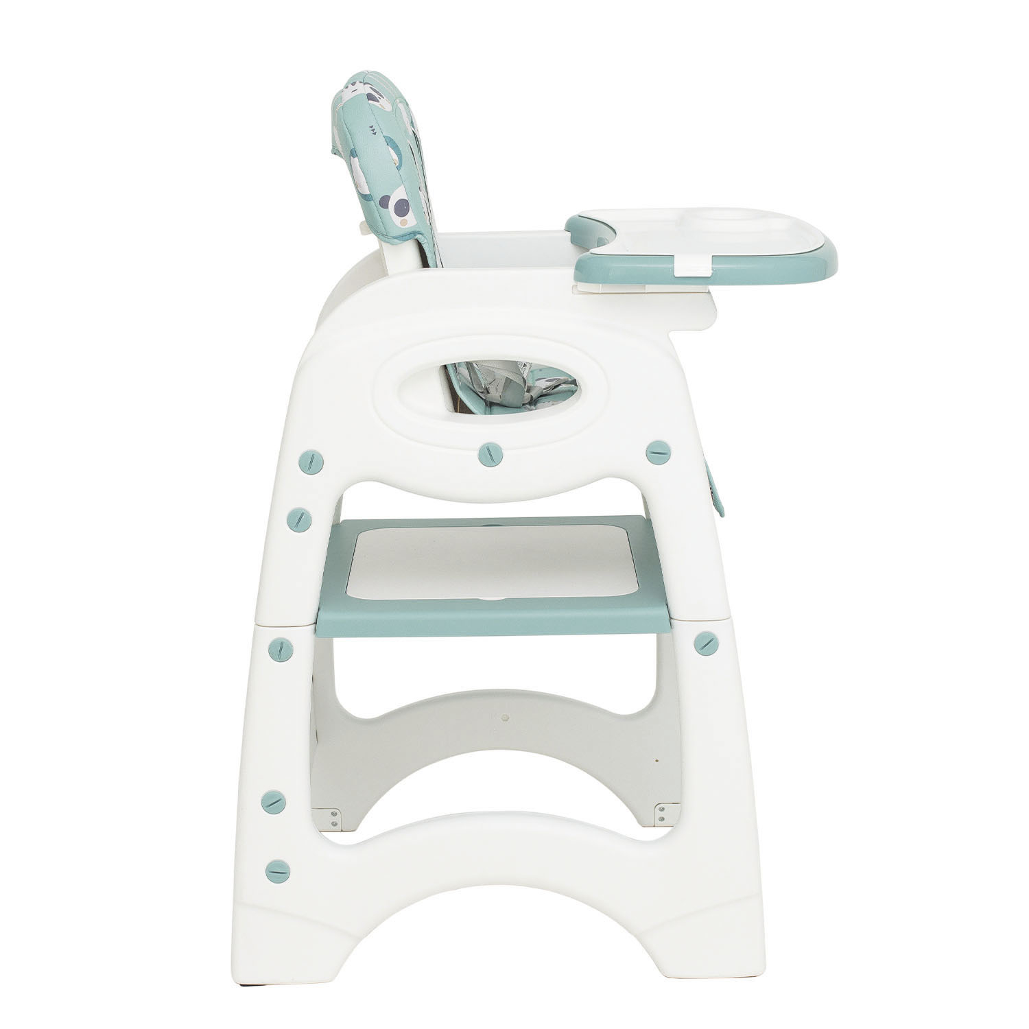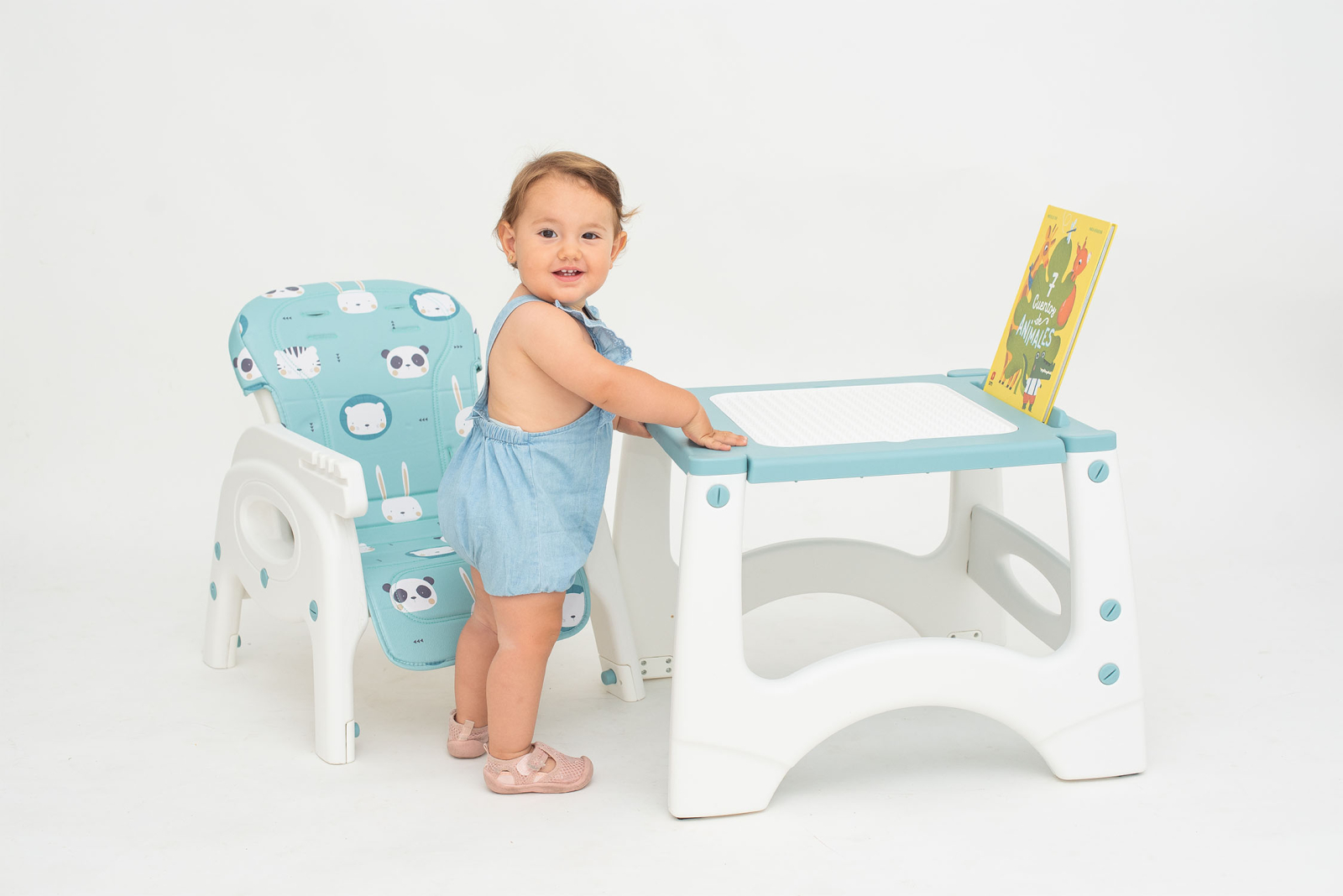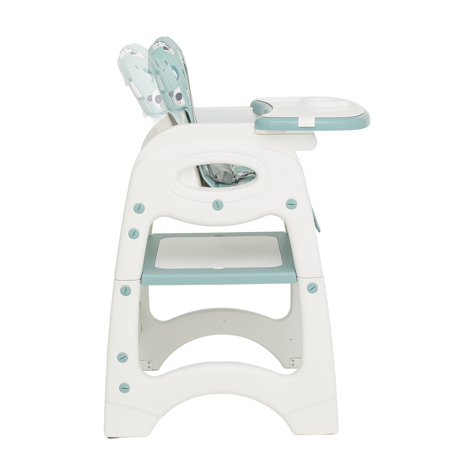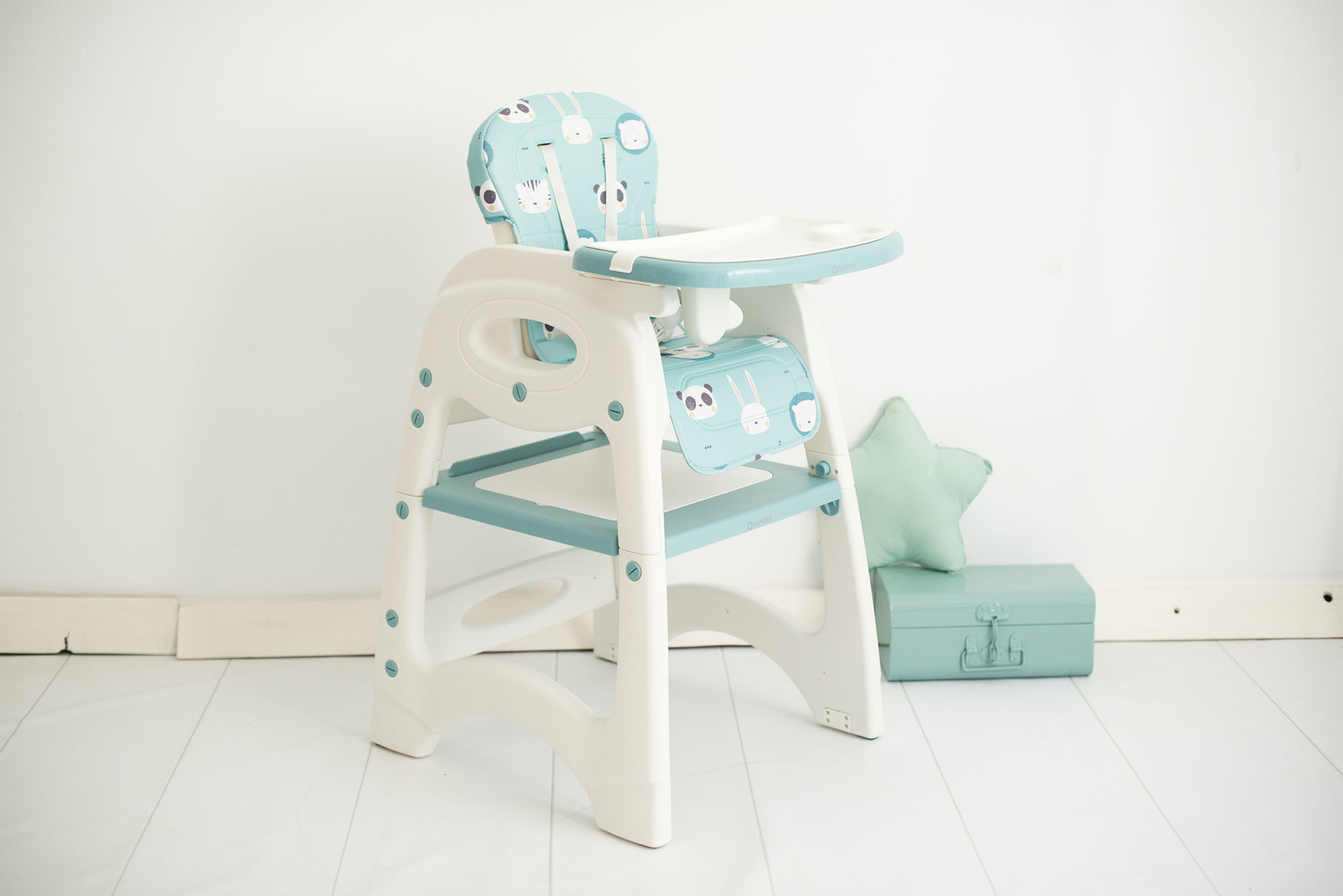 Scaun de masa cu spatar reglabil si transformabil in 2 piese utile pentru timp indelungat. Scaunul de masa inalt este recomandat de la 6 luni pana la 15 kg (3 ani), apoi setul transformat in scaunel si masuta se poate utiliza de la 2 la 6 ani. Acesta se poate utiliza ca loc de luat masa, loc de joaca sau desfasurarea activitatilor zilnice.
