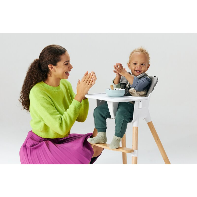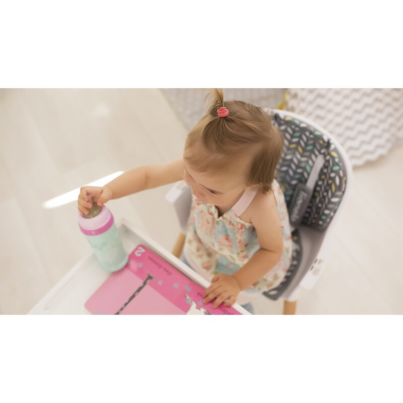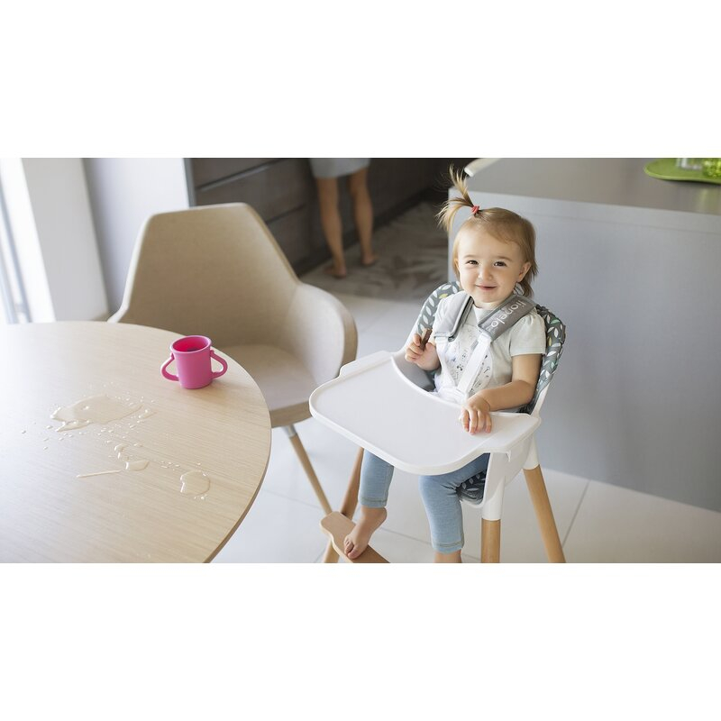 Datorita centurilor ajustabile in 5 puncte cu protectie a soldului, copilul castiga o protectie eficienta impotriva caderii din scaun si mentine pozitia corecta in timpul mesei.