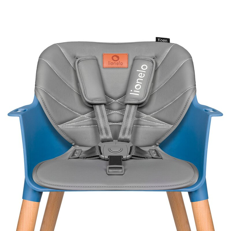 Lionelo Koen este un scaun multifunctional care poate fi folosit mai multi ani. Datorita reglarii inaltimii in 2 pasi si suportului pentru picioare detasabil, produsul creste odata cu cel mic, actionand mai intai ca un scaun de masa, apoi schimbandu-se in versiunea conceputa pentru copiii mai mari.