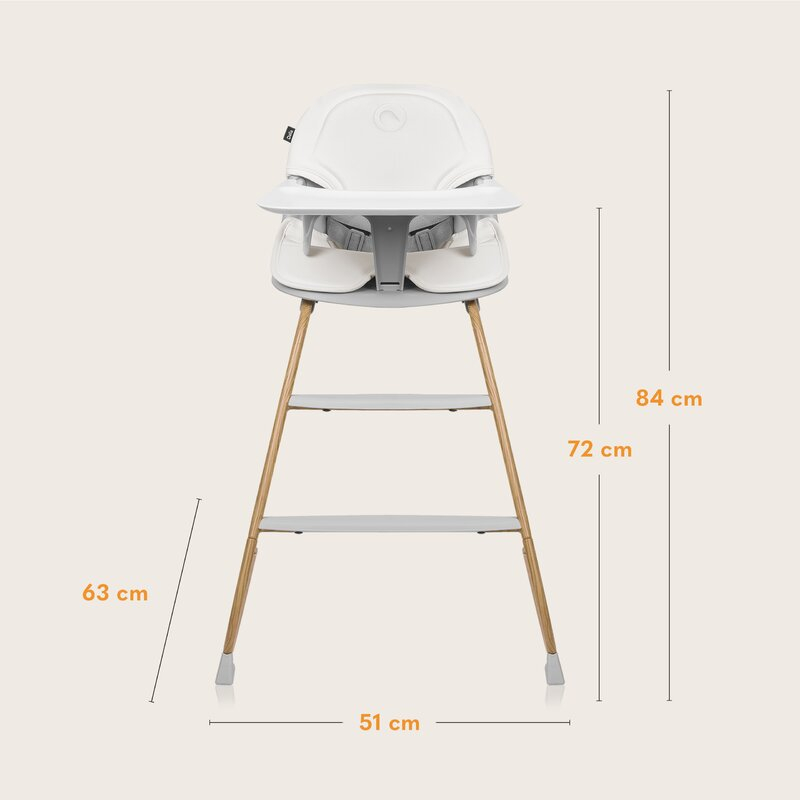 Cadrul scaunului este stabil, oferind siguranta maxima, mai ales pentru cei mai mici copii. In plus, inaltimea sa a fost adaptata la mesele standard, ceea ce imbunatateste confortul in timpul meselor impreuna.