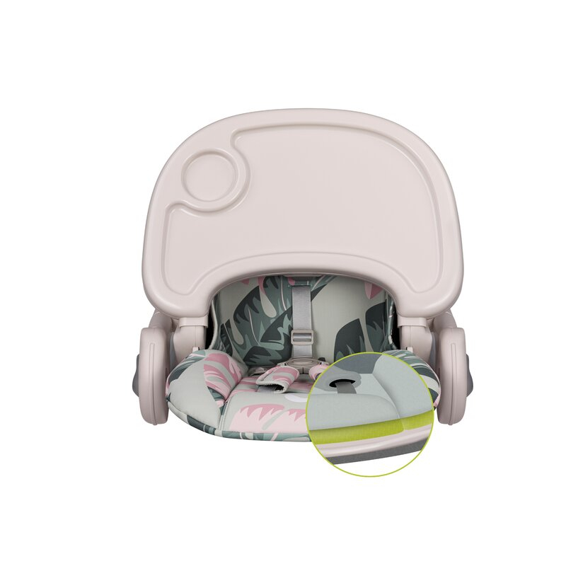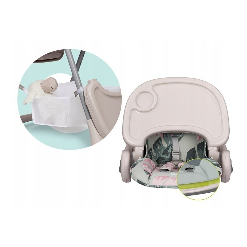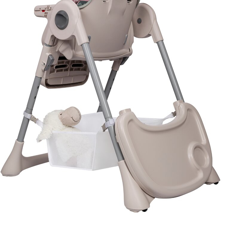 Cosul spatios de sub scaun va gazdui accesoriile si jucariile necesare, astfel incat acestea sa fie mereu la indemana.