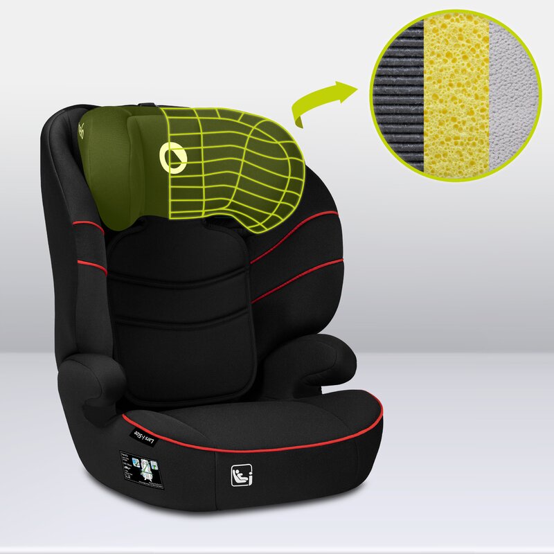 Lars i-Size respecta aprobarea stricta R129, deci indeplineste cele mai inalte standarde de siguranta. Este echipat cu o tetiera reglabila cu Memory Foam, care, datorita elasticitatii sale, absoarbe perfect suprasarcinile. Protectia laterala avansata ofera protectie suplimentara in cazul unei coliziuni.