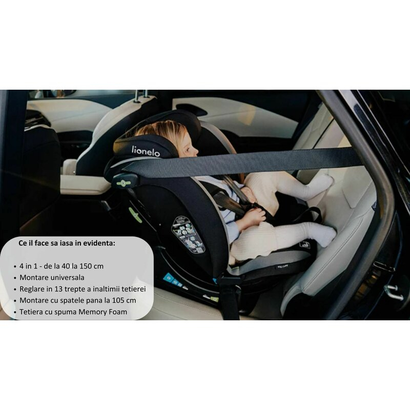 Lionelo Aart i-Size Black Carbon Red este un scaun auto conform cu omologarea stricta R129. Este destinat copiilor din grupa de inaltime 40-150 cm si poate fi montat atat cu fata, cat si cu spatele catre directia de mers. Fixarea se face cu ajutorul centurilor de siguranta auto cu 3 puncte, astfel incat scaunul se potriveste oricarui tip de masina. Ceea ce distinge produsul nostru este tetiera generoasa, care a fost intarita cu spuma Memory Foam. In plus, rezistenta ridicata a carcasei este garantata de fibra de sticla. Reglarea in 13 trepte a tetierei, precum si insertia moale redusa si lombara, fac ca scaunul sa creasca odata cu copilul, adaptandu-se la nevoile sale in schimbare.
