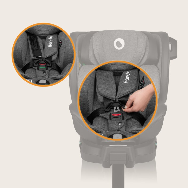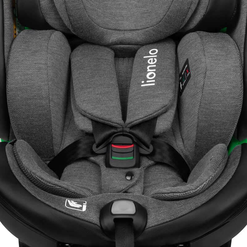 Lionelo Harmony i-Size este un scaun auto pentru copii, avansat din punct de vedere tehnologic, certificat de siguranta R129, destinat copiilor cu inaltimea intre 40 si 150 cm. Modelul este potrivit atat pentru instalarea cu fata catre directia de mers, cat si cu spatele catre directia de mers, folosind sistemul ISOFIX si un picior stabilizator. Harmony i-Size este echipat cu sistemul inovator Side Impact Guard, care ofera protectie avansata la impact lateral prin utilizarea unui pad de impact repozitionabil, care absoarbe energia in timpul coliziunilor auto. Scaunul pentru copii dispune, de asemenea, de ajustarea spatarului in cinci trepte, atat in pozitia cu fata, cat si cu spatele catre directia de mers, pentru a asigura confortul maxim in timpul calatoriilor cu masina. Functia suplimentara Buckle Alarm alerteaza parintele cand catarama este desfacuta pentru a spori siguranta utilizarii. Pentru confort maxim, scaunul este echipat cu baza rotativa EasyTurn de 360 grade, care faciliteaza asezarea si scoaterea copilului din scaun. Cadru anti-rotatie ajustabil asigura o potrivire si mai buna a scaunului auto pentru copii cu scaunul masinii.