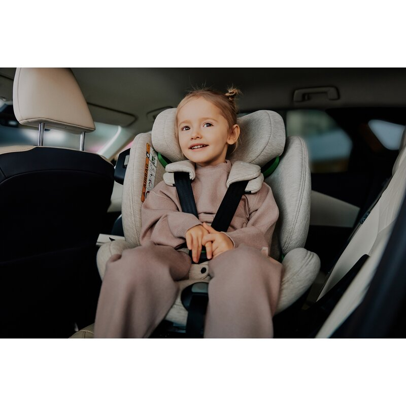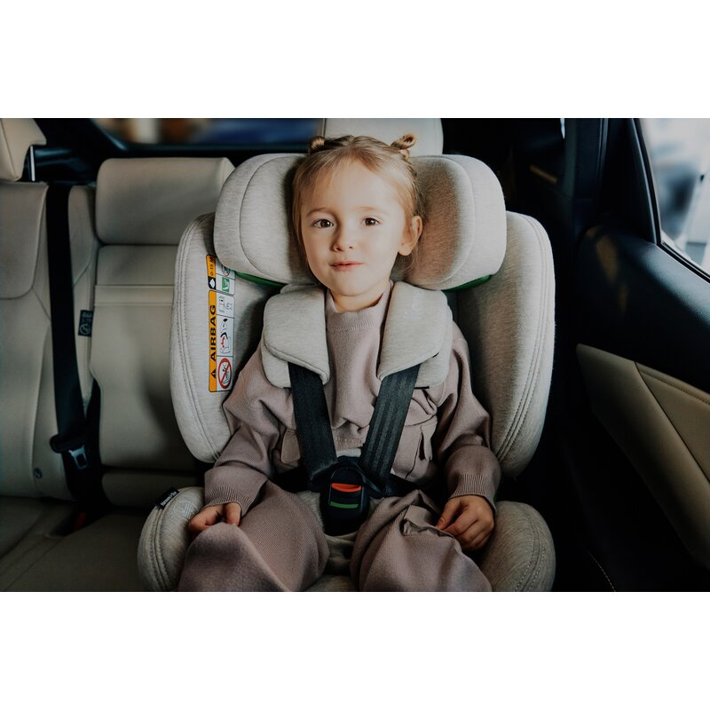 Tetiera, dotata cu tehnologia Tri-Guard, combina straturi din trei materiale diferite, inclusiv polistiren EPS si spuma cu memorie, cunoscuta pentru elasticitatea sa exceptionala. Harmony i-Size permite transportarea in siguranta a copilului (pana la 105 cm inaltime) in pozitia cu spatele catre directia de mers, care este considerata cea mai sigura metoda de instalare a scaunului.