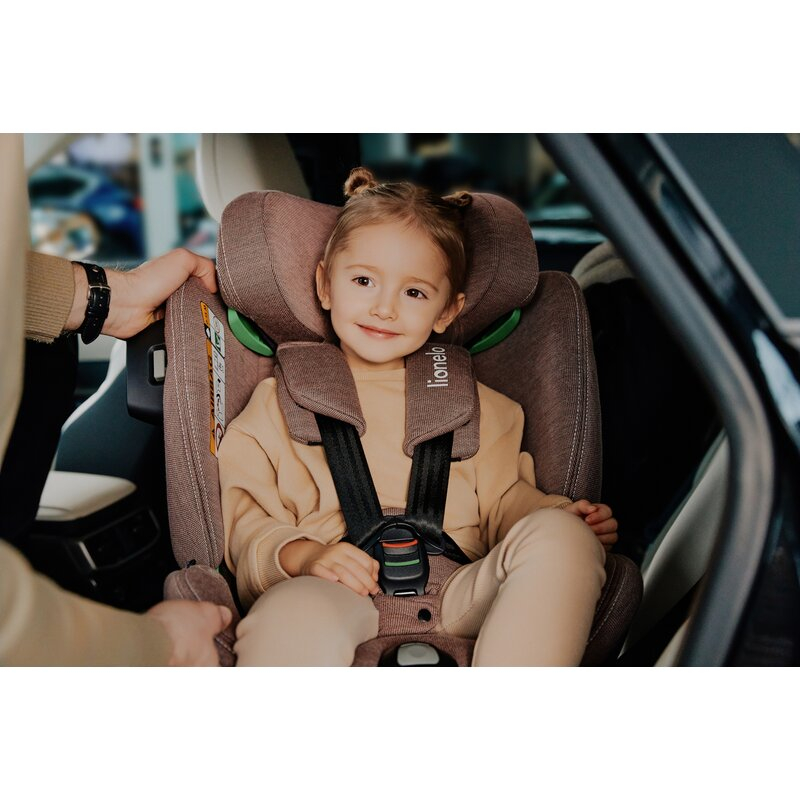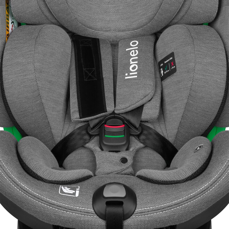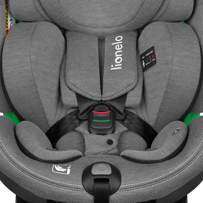 Lionelo Harmony i-Size este un scaun auto pentru copii, avansat din punct de vedere tehnologic, certificat de siguranta R129, destinat copiilor cu inaltimea intre 40 si 150 cm. Modelul este potrivit atat pentru instalarea cu fata catre directia de mers, cat si cu spatele catre directia de mers, folosind sistemul ISOFIX si un picior stabilizator. Harmony i-Size este echipat cu sistemul inovator Side Impact Guard, care ofera protectie avansata la impact lateral prin utilizarea unui pad de impact repozitionabil, care absoarbe energia in timpul coliziunilor auto. Scaunul pentru copii dispune, de asemenea, de ajustarea spatarului in cinci trepte, atat in pozitia cu fata, cat si cu spatele catre directia de mers, pentru a asigura confortul maxim in timpul calatoriilor cu masina. Functia suplimentara Buckle Alarm alerteaza parintele cand catarama este desfacuta pentru a spori siguranta utilizarii. Pentru confort maxim, scaunul este echipat cu baza rotativa EasyTurn de 360 grade, care faciliteaza asezarea si scoaterea copilului din scaun. Cadru anti-rotatie ajustabil asigura o potrivire si mai buna a scaunului auto pentru copii cu scaunul masinii.