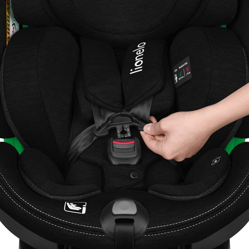 Lionelo Harmony i-Size este un scaun auto pentru copii, avansat din punct de vedere tehnologic, certificat de siguranta R129, destinat copiilor cu inaltimea intre 40 si 150 cm. Modelul este potrivit atat pentru instalarea cu fata catre directia de mers, cat si cu spatele catre directia de mers, folosind sistemul ISOFIX si un picior stabilizator. Harmony i-Size este echipat cu sistemul inovator Side Impact Guard, care ofera protectie avansata la impact lateral prin utilizarea unui pad de impact repozitionabil, care absoarbe energia in timpul coliziunilor auto. Scaunul pentru copii dispune, de asemenea, de ajustarea spatarului in cinci trepte, atat in pozitia cu fata, cat si cu spatele catre directia de mers, pentru a asigura confortul maxim in timpul calatoriilor cu masina. Functia suplimentara Buckle Alarm alerteaza parintele cand catarama este desfacuta pentru a spori siguranta utilizarii. Pentru confort maxim, scaunul este echipat cu baza rotativa EasyTurn de 360 grade, care faciliteaza asezarea si scoaterea copilului din scaun. Cadru anti-rotatie ajustabil asigura o potrivire si mai buna a scaunului auto pentru copii cu scaunul masinii.