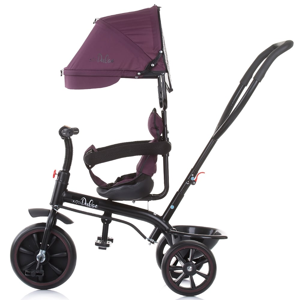 Tricicleta Chipolino Pulse pentru copii cu varsta incepand de la 1,5 ani, cu o greutate de pana la 25 kg. Produs multifinctional, poate fi pus in miscare de catre parinte prin actionarea manerului sau de catre copil prin actionarea pedalelor. Copertina, m