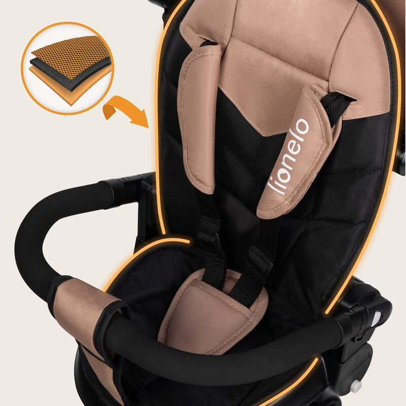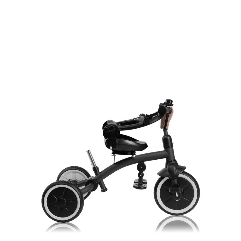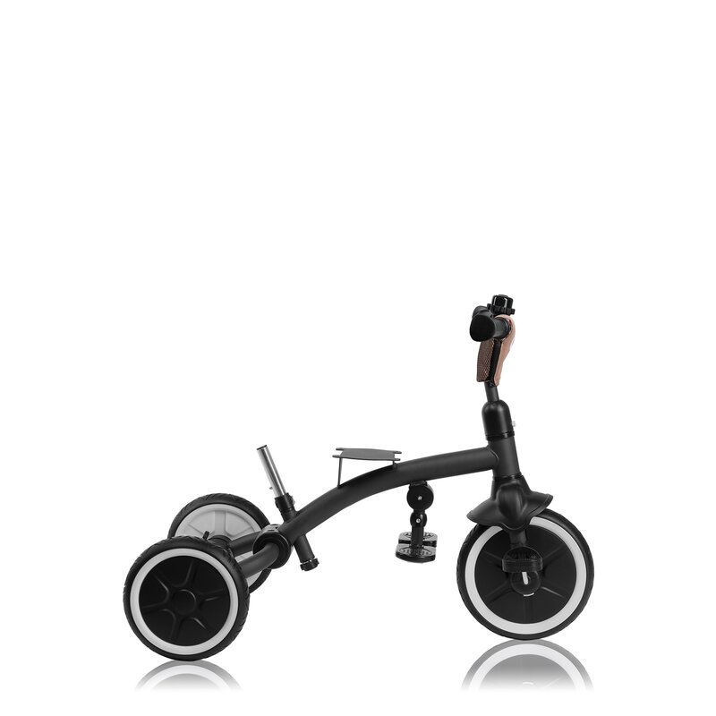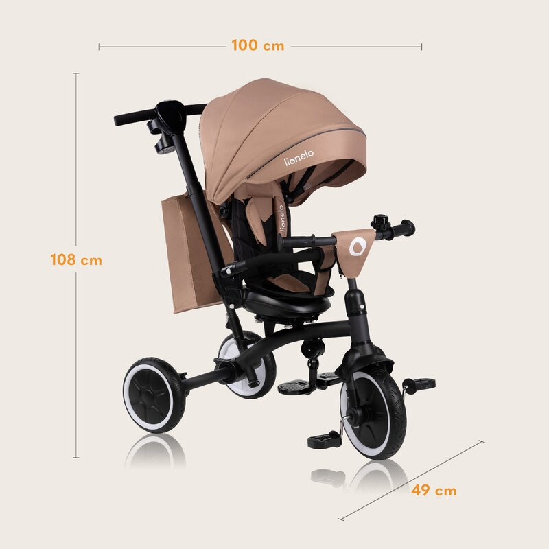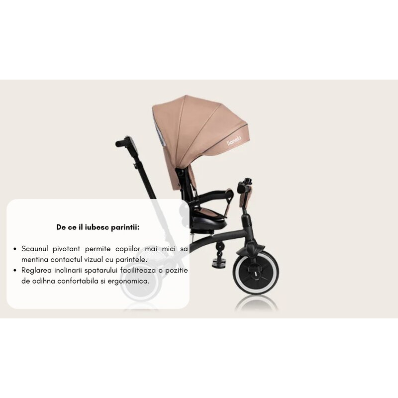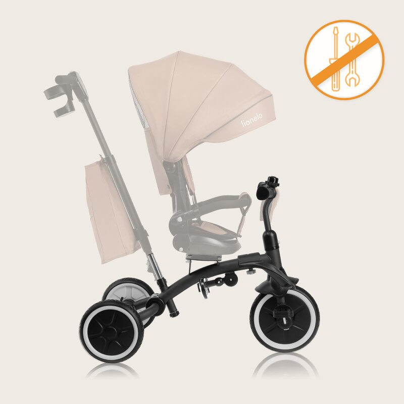 Lionelo Tris Plus este un produs 2 in 1 care combina functiile unui carucior bicicleta si ale unei triciclete. Este conceput pentru copii de la aproximativ 9 luni pana la aproximativ 5 ani sau pana cand ating o greutate de 25 kg. Datorita designului sau modular, tricicleta se adapteaza pe masura ce copilul creste. Dispune de doua suporturi de picioare confortabile pentru copiii mai mici si mai mari, care pot lua o pauza, in timp ce functia de roata libera permite pedalarea fara a influenta viteza de deplasare. Scaunul pivotant la 360 grade cu reglare a inclinarii spatarului ofera flexibilitatea de a personaliza setarile scaunului in functie de preferintele copilului. Rotile mari si rezistente la perforare din PU se descurca usor pe diverse terenuri. Tris Plus se asambleaza cu un clic, eliminand necesitatea unor unelte suplimentare. Cand produsul este pliat, este compact, asigurand o depozitare convenabila.