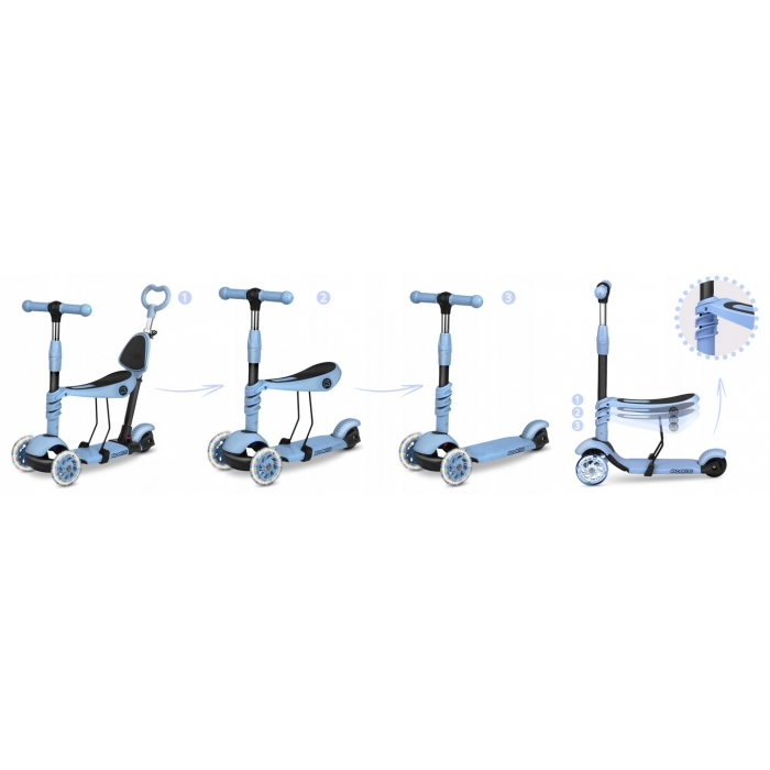 Ricokids Trotineta 3 in 1 cu roti cu LED Ricokids Todi 765401 - Albastru