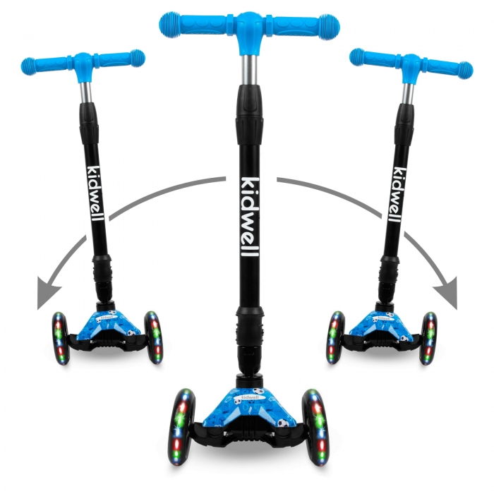 Trotineta VENTO cu trei roti este perfect echilibrata, stabila si va deveni cu siguranta partenerul de joaca al copilului tau. Rotile cu LED iluminate si designul interesant vor incanta fiecare mic utilizator.