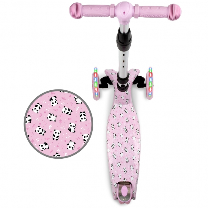 Trotineta Kidwell VENTO - Panda cu trei roti este perfect echilibrata, stabila si va deveni cu siguranta partenerul de joaca al copilului tau. Rotile cu LED iluminate si designul interesant vor incanta fiecare mic utilizator.