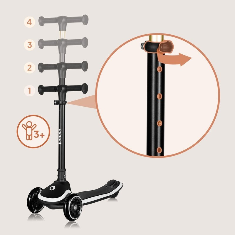 Este potrivita deja pentru copiii de 3 ani, iar copiii mult mai mari si mai in varsta o pot folosi! Acest lucru se datoreaza capacitatii ridicate de incarcare de pana la 50 kg si reglarii ghidonului in 4 trepte, a carui inaltime o poti ajusta usor la inaltimea actuala a copilului.